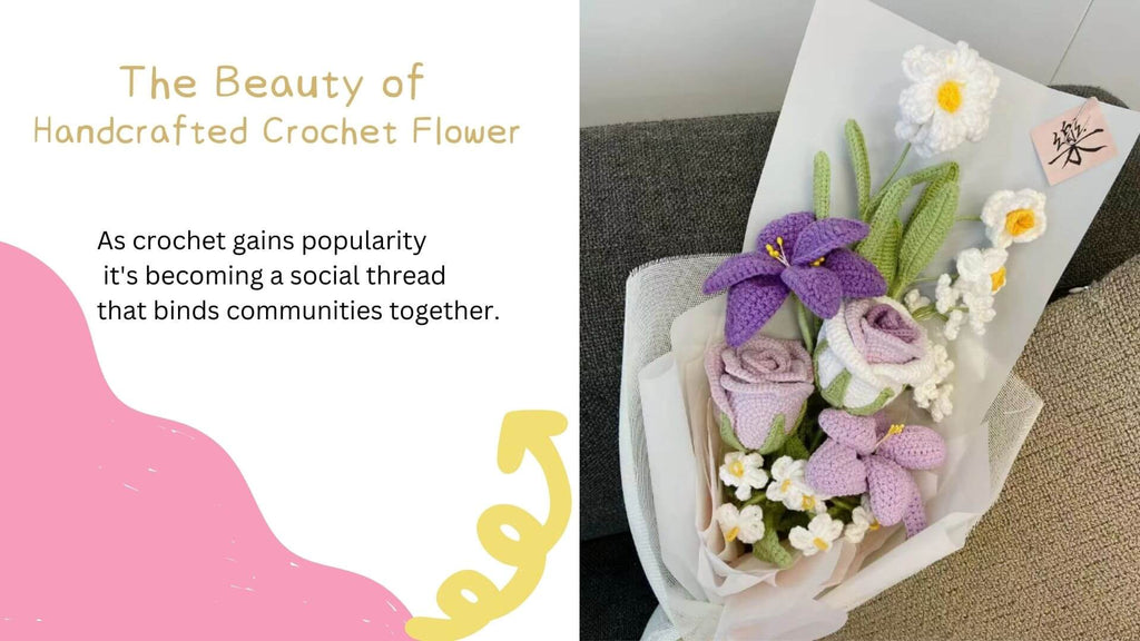 As crochet gains popularity, it's becoming a social thread that binds communities together. Workshops, online forums, and social media platforms are buzzing with enthusiasts sharing tips, patterns, and the joy of their creations. Handcrafted crochet flower arrangements are not just individual expressions; they're a communal celebration of creativity.